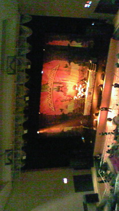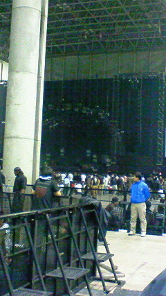 開始10分ぐらい前、中央の通路付近でいかつい黒人&白人のスタッフと思わしき人達が集まってきて談笑し始めます。厳ついスタッフおおいんだなぁと思いきや、長身の強面の黒人さんが現れて彼らに指示し始め、彼らは通路に等間隔に立ち並び始めます。ボスと思われる長身の方の背中には”SECURITY”の文字が。。。バライティでしかみたことないような光景がライブ中見られるとはこの時は思いもよりませんでした(苦笑)。